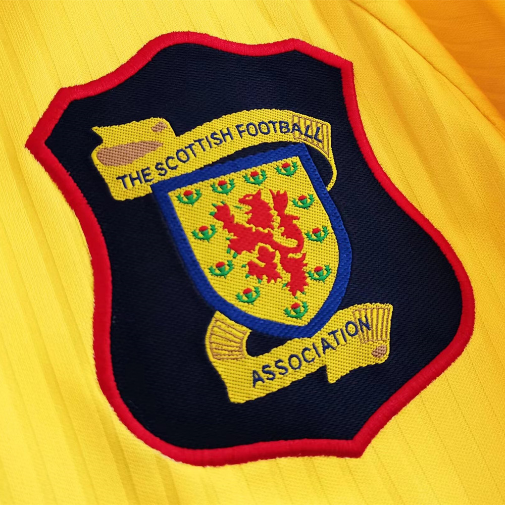 Modern remake of Scotland’s away jersey for the 1996-1998 season. Designed by sponsor Umbro. A blast from the past. Make a statement with an iconic look.