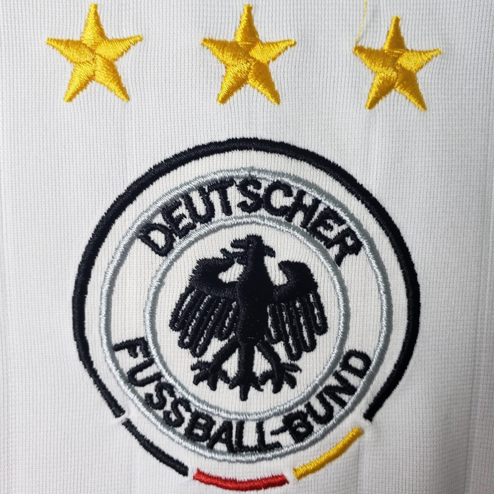 Modern remake of 2006 Germany’s word cup jersey for the season. Designed by sponsor Adidas. A blast from the past. Make a statement with an iconic look.