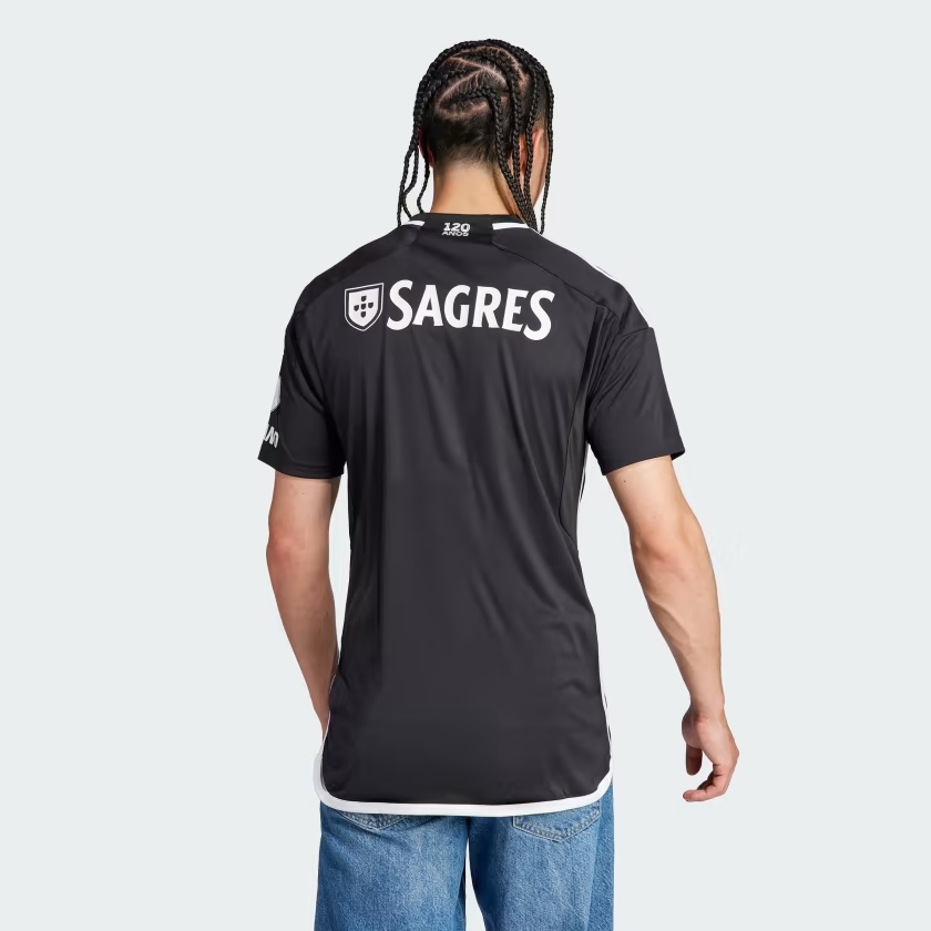 Football forms a direct line from Lisbon to the rest of the world. A colourful representation of a cosmopolitan club, a group of blue, yellow, white, green and red stripes bisect this adidas Benfica jersey’s pitch-black base. Created for comfortable playing and supporting, this shirt combines mesh panels with moisture-absorbing AEROREADY. On the back neck, a “120 Anos” signoff celebrates a memorable milestone. Made with 100% recycled materials, this product represents just one of our solutions to help end plastic waste.