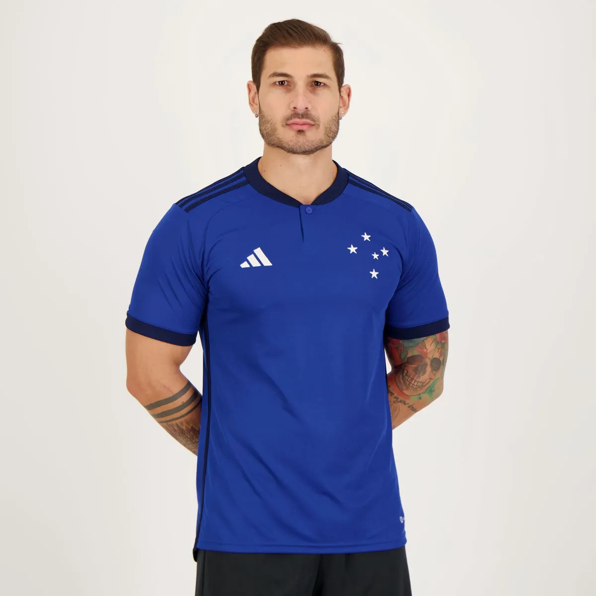 Discover the 2023-24 Cruzeiro Mens Home Jersey, created by Adidas, it is perfect for the fanatical Cabuloso fan. The mantle is a tribute to the 20th anniversary of the conquest of the Triple Crown, has a blue design, has an embroidered shield and a commemorative seal on the back of the neck.