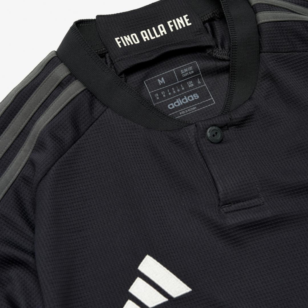 Turin, city of art, history, culture, football, but also of architecture and industry. The 2023/24 third kit is inspired by these last two aspects. The new uniform incorporates a ribbed knit pattern, selected to reflect the textures and surfaces that can be found in Turin’s architectural structures. The homage to the city’s industrial heritage is in the base colour, charcoal, which completes a truly unique look. Not only that: the choice of the base is a particular homage, which aims to celebrate the long tradition of legendary Juventus goalkeepers, reproducing the color that has become synonymous with their shirts over the years. The particular and revolutionary idea is to use the uniform of the movement roles on the pitch to remember them, thus placing this type of celebration at the center of the game. The design is completed with a black ‘Henry’ button-down collar and adidas’ famous three stripes, in grey, on each sleeve.