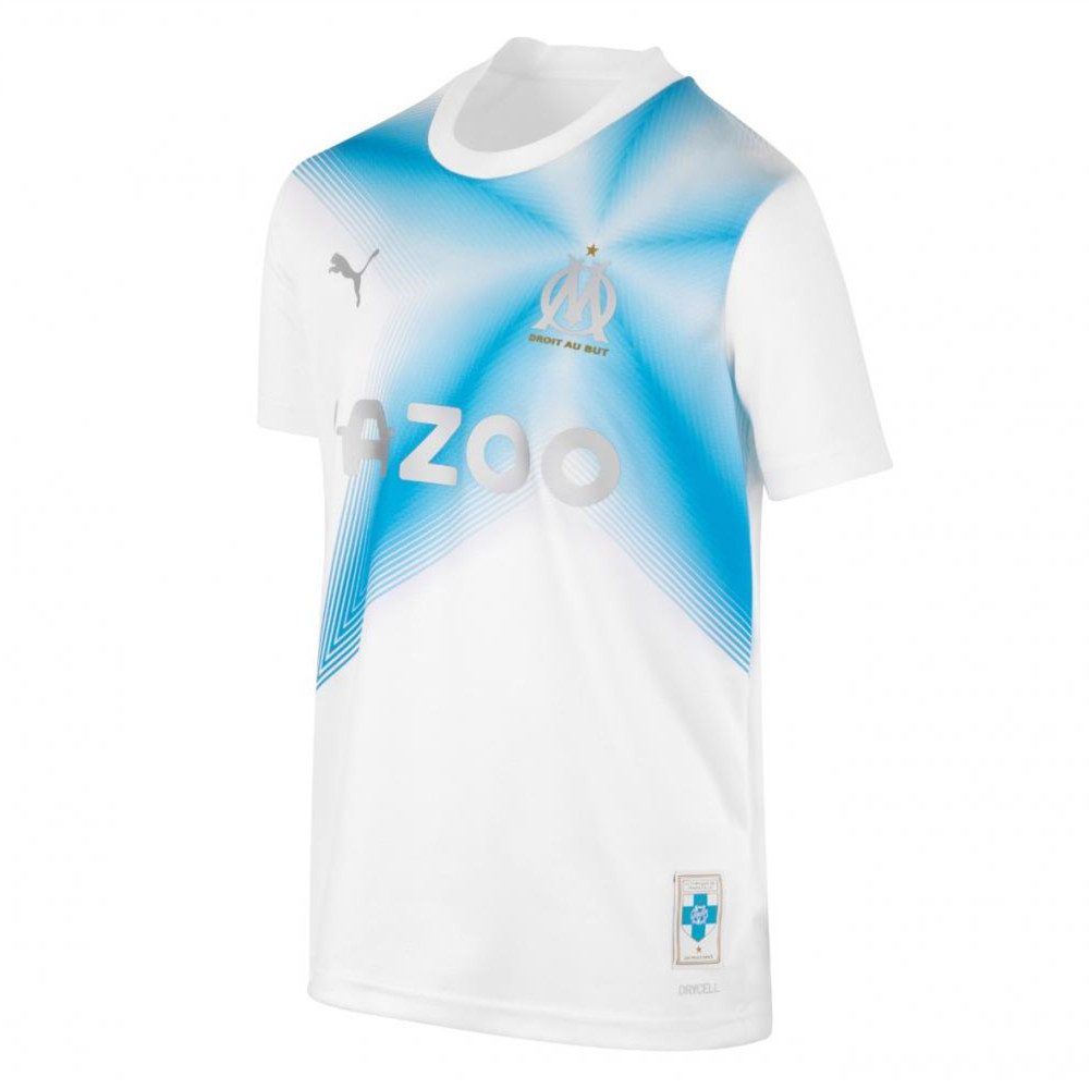 Puma 2023-24 Olympique de Marseille Mens 4th Celebration Jersey, color White, Adult. Breathable fabric. Comfortable. DryCELL technology for optimal perspiration wicking.