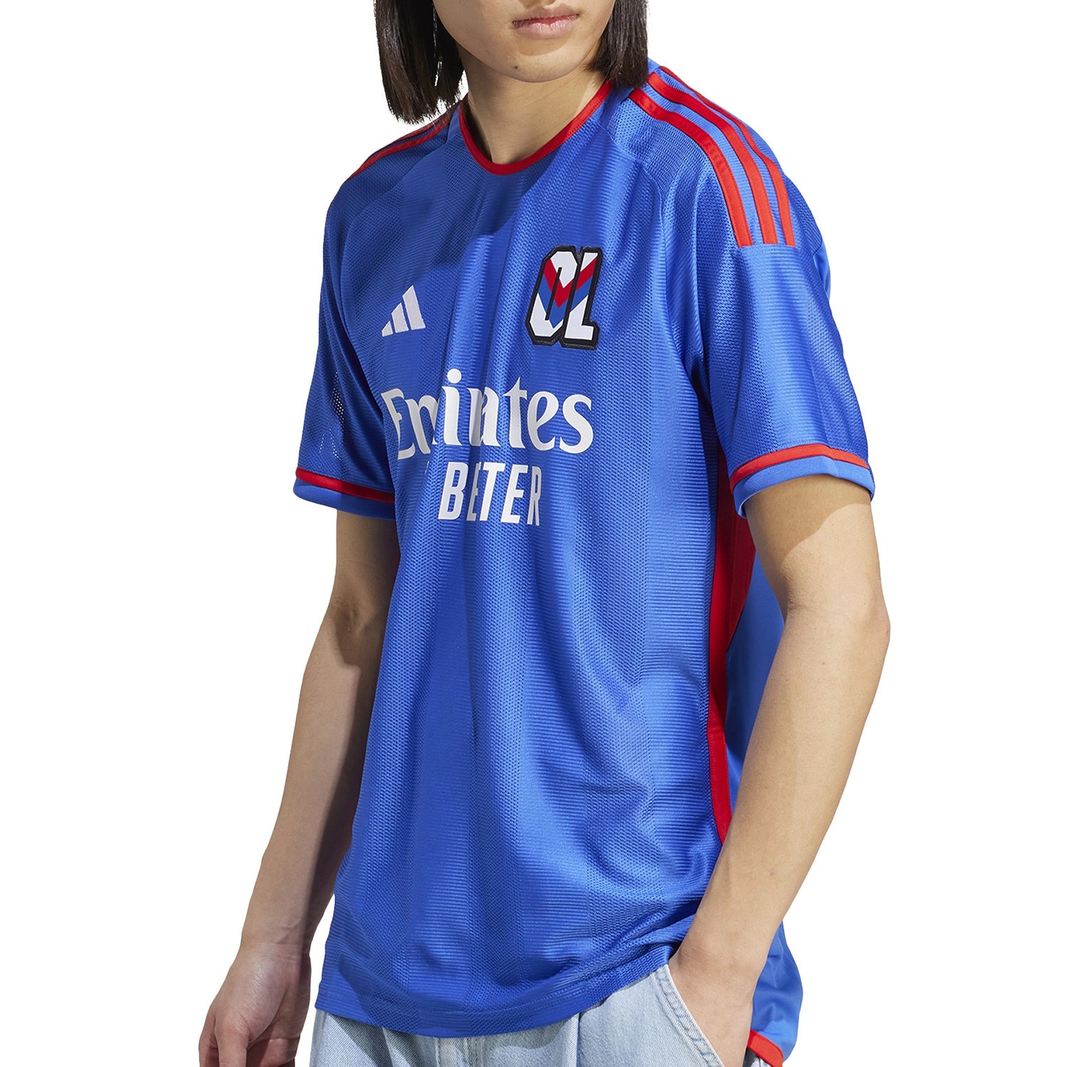 23-24 AWAY JERSEY: BETWEEN SYMBOL AND TRIBUTE TO OL’S HISTORY. Olympique Lyonnais and adidas are proud to present the jersey that the players will wear during away matches for the 23-24 season. They chose to revisit an emblematic tunic of the club, mixing homage and original symbols. For this jersey, the club and the brand opt for the emblematic colors, red and blue. Indeed, the graphics combine a sober, modern and historical inspiration. It embodies the renewal driven in particular by the momentum of training and future generations. The jersey also expresses the strong bond between the players and supporters who are now embarking on a new adventure. Every detail counts for the 23-24 season, the jersey is adorned with a retro badge incorporating the scapular in homage to the young talents of the academy. It has thick and harmonious red lines on the collar and forearm, the three emblematic stripes being engraved on the shoulder. The vintage crest embroidered on the chest refers to the club’s deep attachment to its supporters, who have continued to show their dedication for several decades by following its journey, that of the women and men who built it and who write his history.