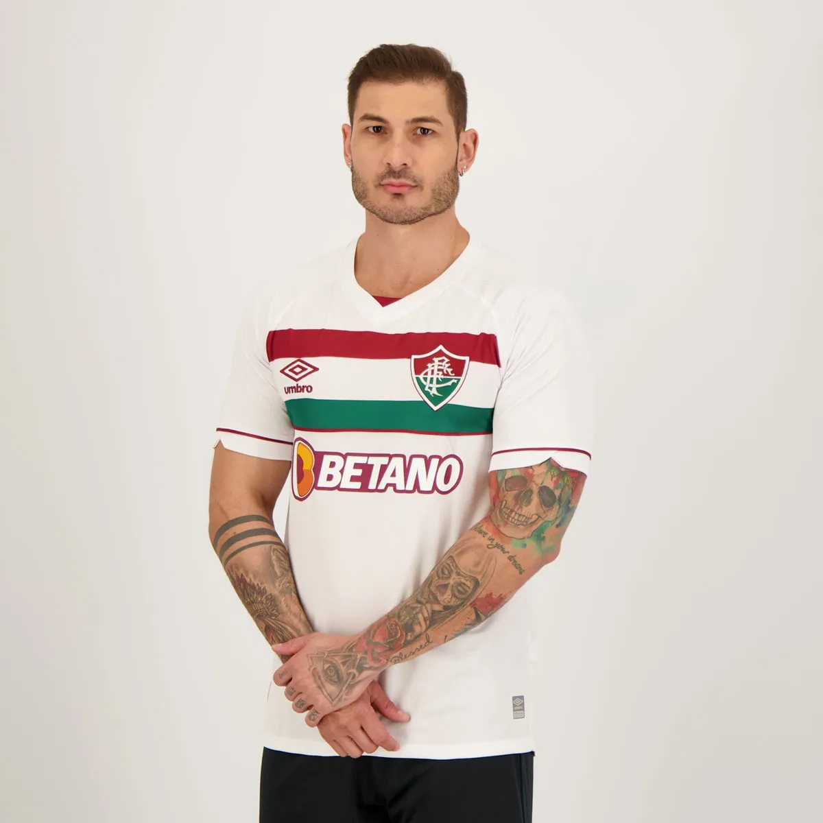 Umbro presents the 2023-24 Umbro Fluminense Mens Away Jersey, the mantle that celebrates the 1952 Copa Rio, considered a world title. Made of polyester, the piece features a white design, in addition to carrying the club’s badge highlighted in the chest region.