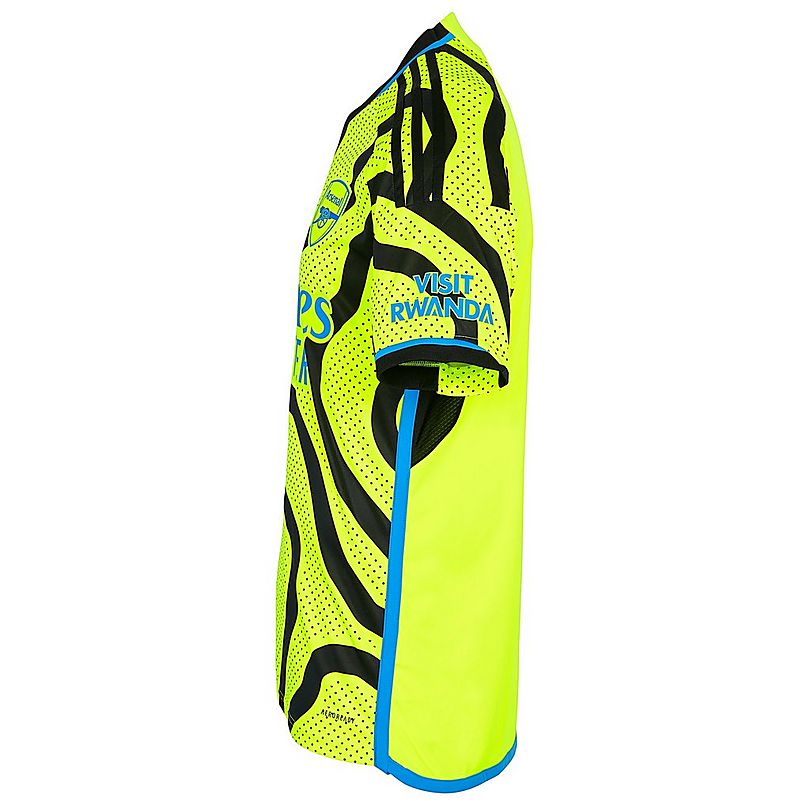 Arsenal’s identity gets a modern update in the Arsenal 23/24 Away Shirt. Flowing over a bright yellow background, black meandering graphics suggest the continuous motion of supporters in N7 on match days. Crafted from recycled polyester, it comes with an embroidered Club crest at chest, side mesh inserts and moisture-absorbing AEROREADY technology to keep you dry and comfortable, anywhere, anytime. Pair it with the Arsenal 23/24 Away Shorts to bring your potential to the next level.