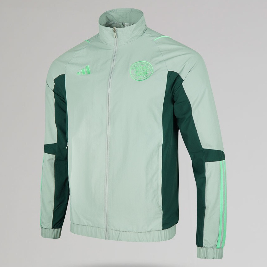 Part of the first drop of the adidas X Celtic 23/24 Training Kit, this light grey pre-match jacket will keep you dry in style. Featuring a full length zip with 2 zip pockets, perfect for your essentials.