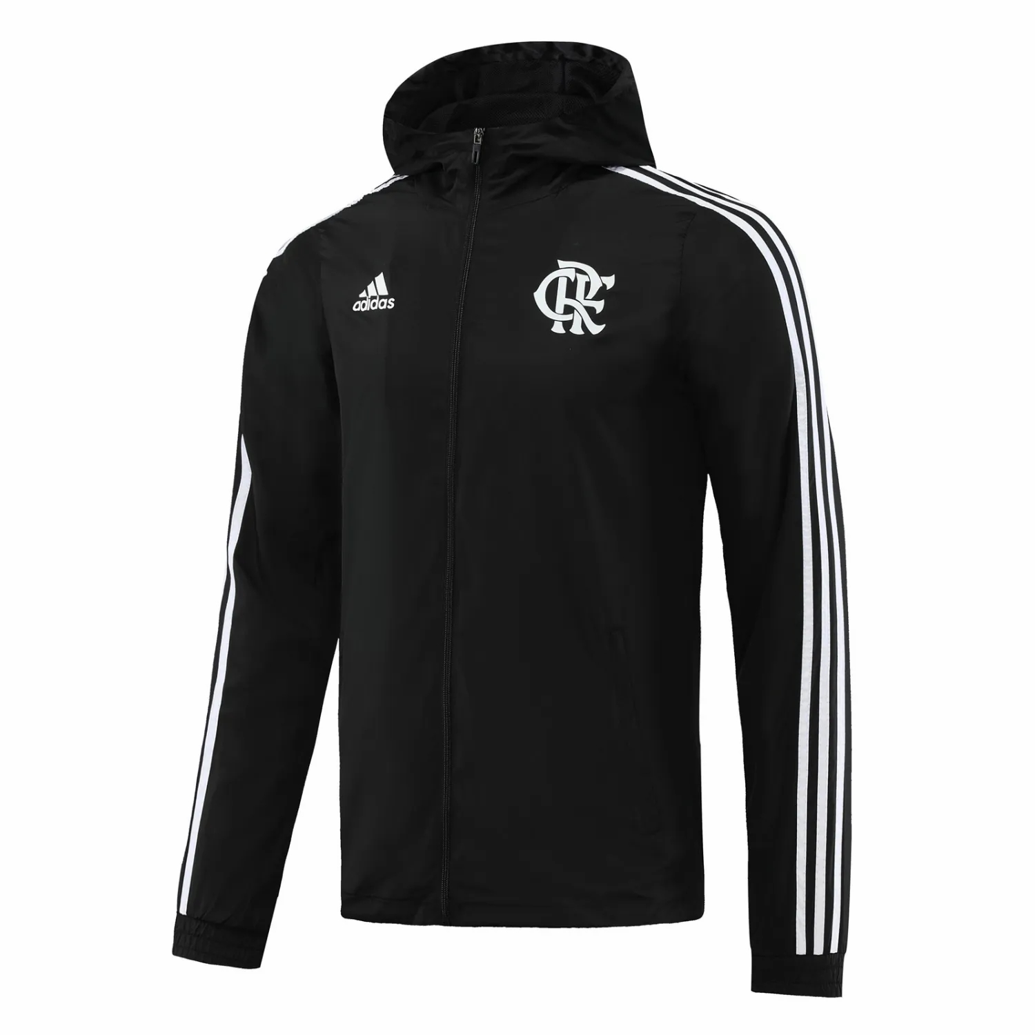 Developed by Adidas, the 23-24 Flamengo Mens Windrunner Full Zip Hooded Jacket Black is an excellent option for training on cold days. Made with polyester, the piece has high collar with fixed hood, has also two front pockets and the club’s badge on the chest.