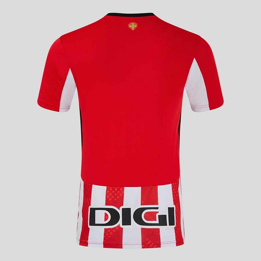 Our Men’s Athletic Club Home Short Sleeve Shirt sharpens your match-day aesthetic. Tackle any challenge, with underarm mesh panels and laser-cut holes allowing you to rise above your opponents, no sweat. Engineered with technical fabric for high-level breathability, absorption, and wicking, it’s not short on style too – the classic printed striped graphic pays homage to the club’s ‘zurigorri’ colourway. So you can keep your favourite team with you, throughout every match.
