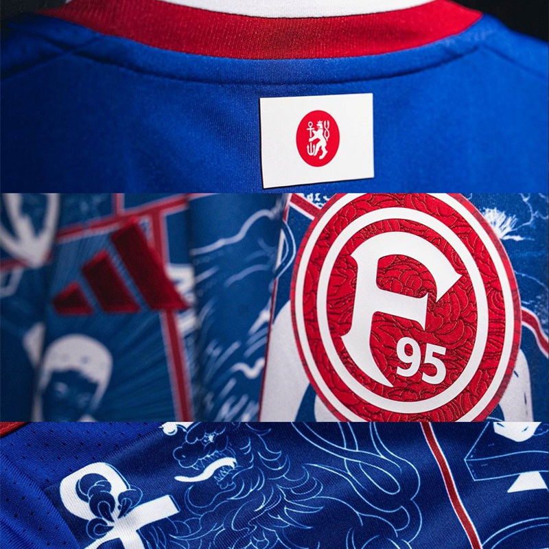 The Adidas Düsseldorf 24-25 Daruma football shirt has an identical design to the ‘Kanata’ shirt with a change in color. It is predominantly blue with white details and red logos. A daruma is a traditional Japanese figure often used as a symbol of perseverance, determination and good luck. The figure is usually round, without arms or legs, and is traditionally made of papier-mâché or wood. A traditional custom surrounding the daruma is that when one person buys a daruma figure, they paint one eye and set a goal or wish. When the goal is achieved, the other eye is colored to symbolize success and show gratitude.