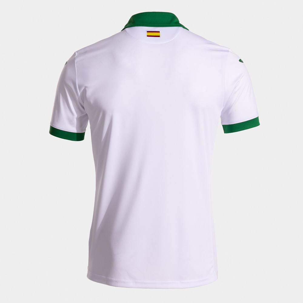 Getafe CF third jersey for the 2024/2025 season, men’s model. An elegant white with green designs is chosen for the third uniform jersey. The white is for the jersey worn by the team in the year of its foundation (1946), and the green for its main sponsor.