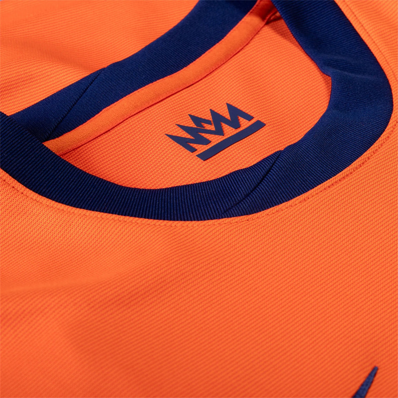 The 24-25 Netherlands Mens Home Jersey celebrates the vibrancy and creativity of Dutch culture. The famous orange of the team is diffused into a new tone for 24/25, with an engineered knit construction, contrasting seams and a bright Liteflex crest. Inside the collar, a crown graphic is designed with a modern twist.