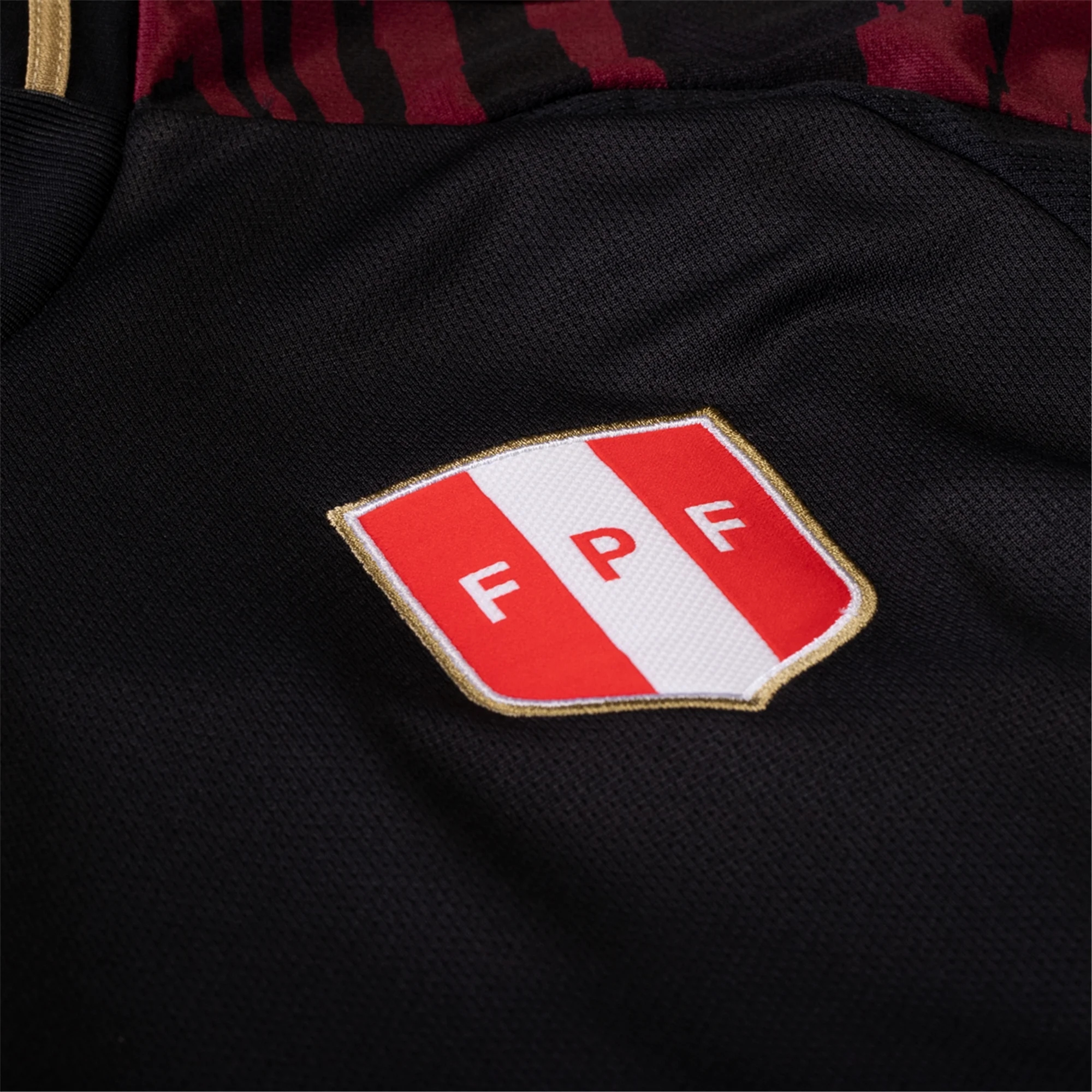 The Peru away kit has been given a bold injection of their traditional red sash – via a unique textured pattern which also takes its aesthetic from the Peruvian Cajon instrument.