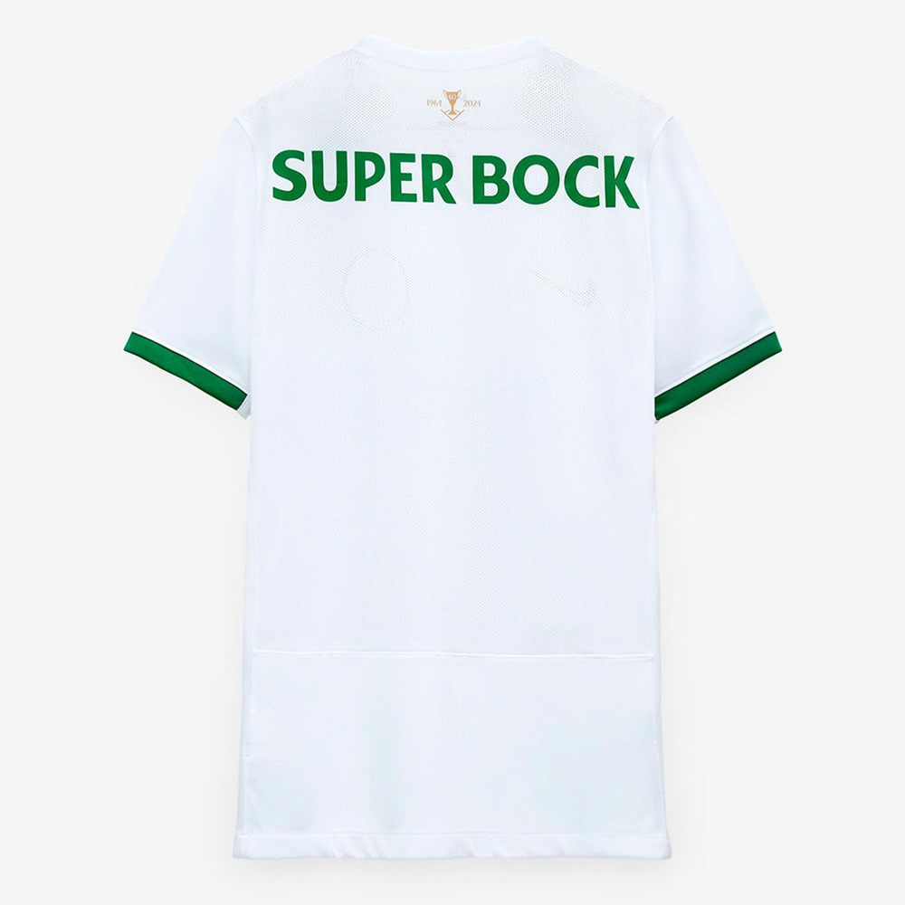 The 60th Cup of Cups commemorative jersey brings with it a large part of the history of Sporting Clube de Portugal. In 1964 Sporting CP won the competition and in 2024 they celebrated it again. A shirt full of symbolism, a white base with green details, which highlight the club’s colors and the classic emblem embroidered on the left side of the chest.