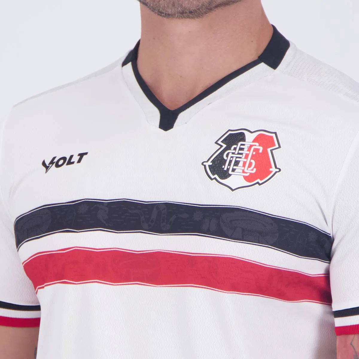 Full of tradition and pride, Volt presents the new Santinha Away mantle for 2024, created for tricolor fanatics. The uniform celebrates nordeste culture, with elements that refer to cordel literature on the two stripes on the jersey and on the back of the neck.